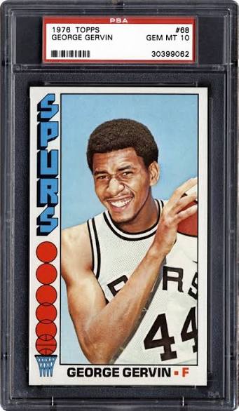 Looking for a 1976–77 Topps George Gervin basketball card, graded PSA 7 (Near Mint). Prefer the standard 1976 Topps Spurs card featuring Gervin in uniform, ideally in a PSA slab with clear label and certification.