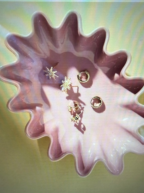 The Freya ceramic trinket tray from Anthropologie is a small decorative dish designed for holding rings, jewelry, or other small items. It’s sought after as a cute vanity or bedside organizer piece, especially in the purple/pink colorway. Ceramic construction makes it a durable, display-worthy home accessory that pairs well with other Anthropologie décor.