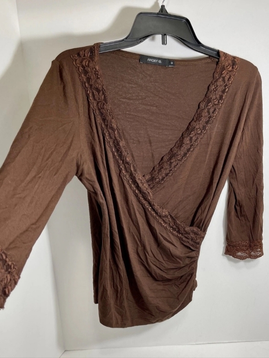 I am looking for an Arden B Y2K/vintage lace-trim wrap blouse/top with ruched detail. I need it in a size small or medium, and I’m open to any color (including brown). I’m very interested in paying a reasonable price.