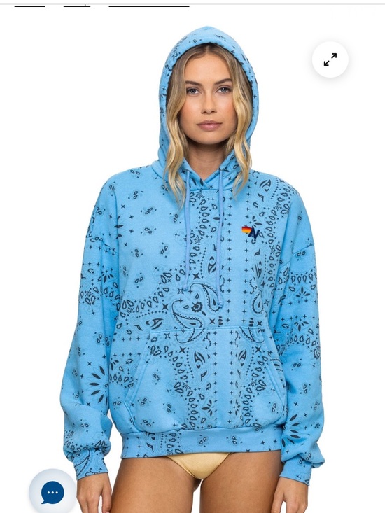 I am looking for an Aviator Nation blue bandana print hoodie with the small flag logo. I want it in size small.