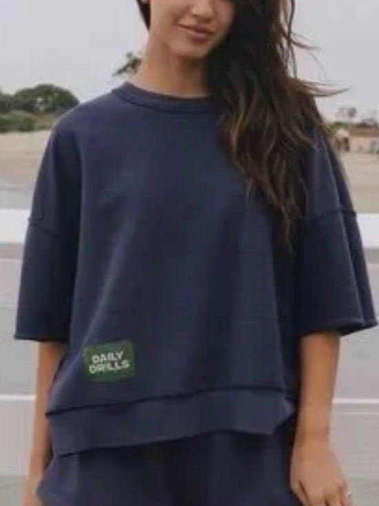 The Daily Drills short sleeve crewneck is a casual wardrobe staple known for its simple, versatile styling. A navy colorway works easily with jeans, shorts, and athleisure looks for everyday wear. Fit can vary by size, but the silhouette is typically an easy, relaxed crewneck style designed for comfort.