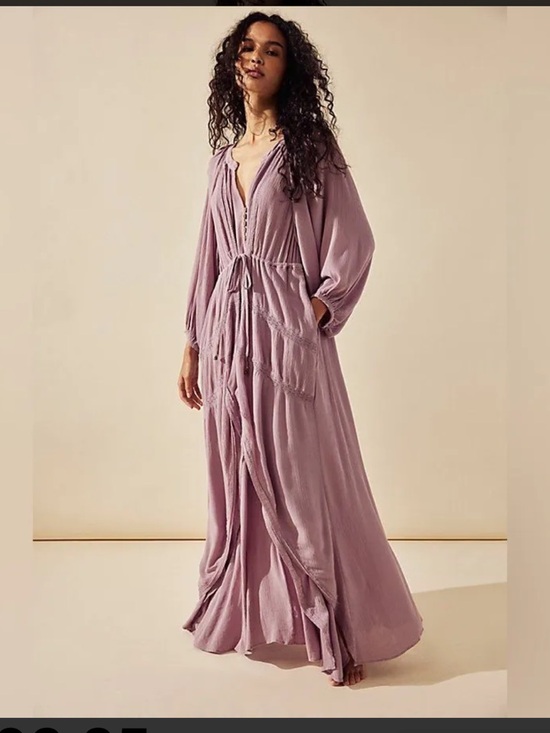 The Free People Plenty of Love dress is a bohemian-inspired dress style from Free People. It is sought after for its feminine silhouette and photo-ready look. The request is specifically for the purple colorway in sizes Large or XL, suitable for an occasion like senior pictures.