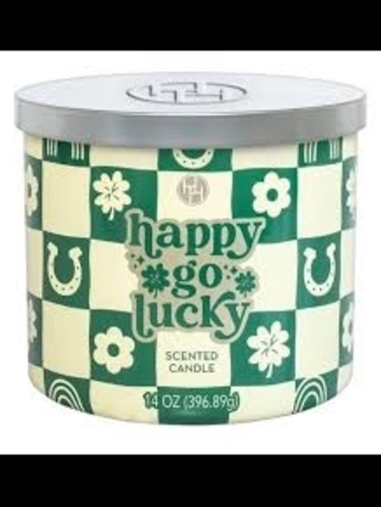 Huntington Home seasonal candles sold at Aldi are limited-run items that can be difficult to find after the holiday season ends. The Happy Go Lucky scent is described as a vanilla, mint, and coconut blend reminiscent of a shamrock shake-style fragrance. Buyers may accept new or gently used candles since availability is limited. This request also allows for close fragrance dupes with a similar scent profile.