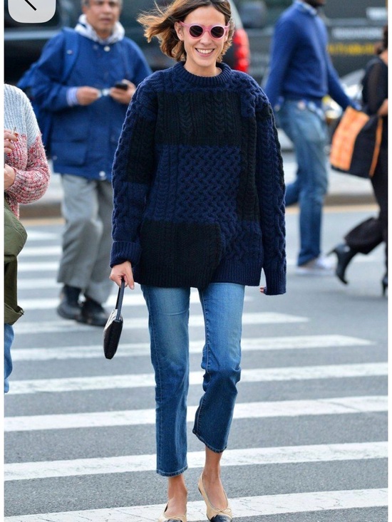 Oversized chunky navy cable knit sweater