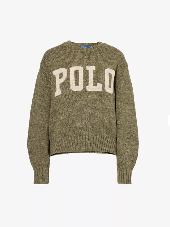I am looking for a Polo by Ralph Lauren olive green crewneck sweater with a cream logo. I need it in size M, L, or XL. If you have one available or have seen one for sale, please let me know.