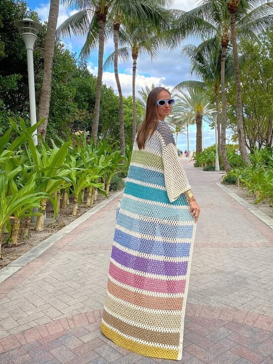 A rainbow pastel coat cardigan is a statement layering piece that combines the warmth of a sweater coat with the easy styling of an open-front cardigan. The multicolor pastel palette makes it popular for playful, festival-inspired, or boho outfits and works well as a cover-up over basics. Because many versions are sold by small boutiques or seasonal brands, identifying the maker can help locate the exact piece or close alternatives.