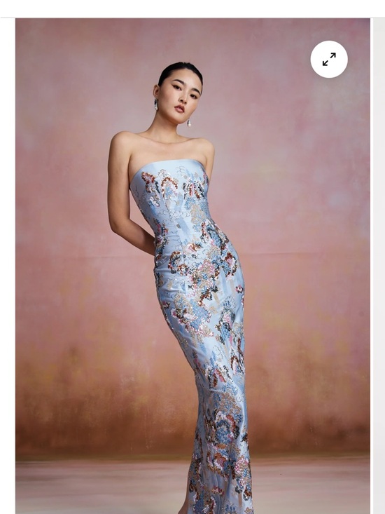 The Sau Lee Ilsa is a formal strapless gown known for its clean, elegant silhouette suited for weddings, galas, and evening events. The strapless neckline and full-length cut make it a statement occasion dress that can be styled with minimal accessories. This request is specifically for size 2 in blue.