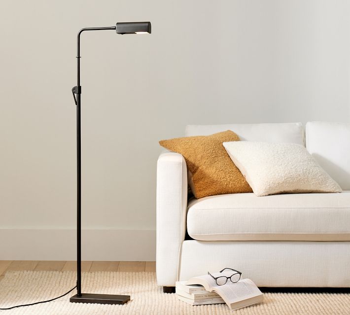 Sherman-style mid-century modern floor lamps, often associated with Gerald Thurston for Lightolier, are prized for their clean architectural lines and adjustable task-light functionality. This request is for a brass-finish example featuring the rectangular lamp head variant, with preference for original period-correct hardware such as sockets, switch, and fittings. Authenticity and value are influenced by intact original head/stem components, finish condition, and whether parts have been replaced or modified.