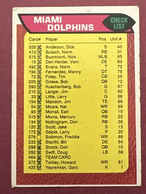 1976 Topps Dolphins Checklist PSA 9
