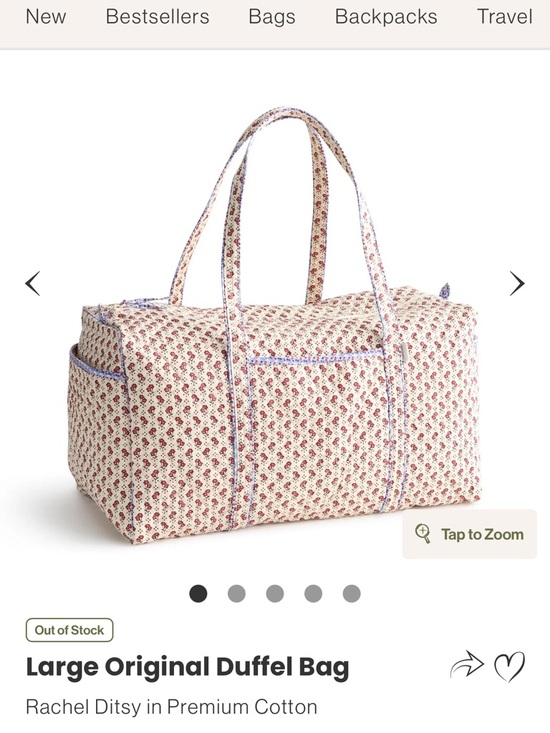 I am looking for the sold-out Vera Bradley Rachel Ditsy large cotton duffle bag in cream. If you have one you’re willing to sell, please let me know.