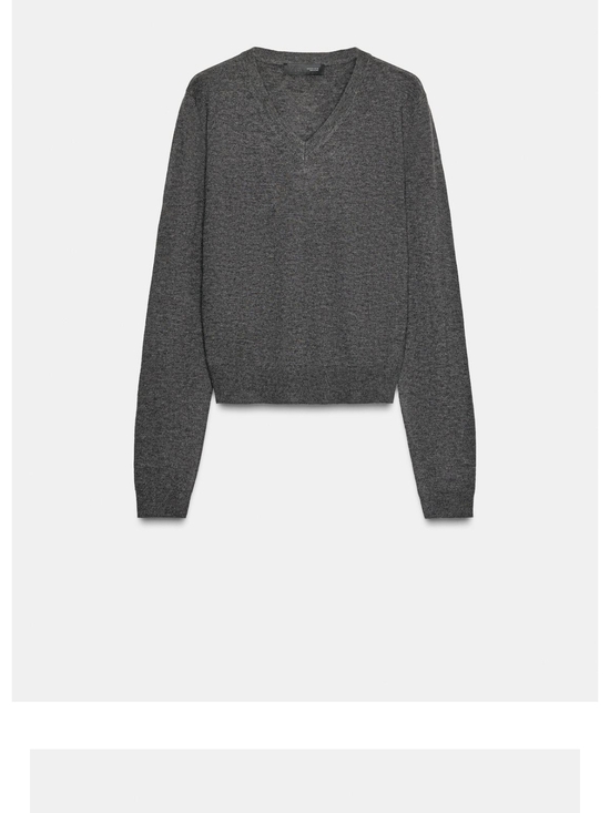 I am looking for a Zara charcoal gray v-neck knit sweater. I want a classic, lightweight knit with a simple silhouette and ribbed cuffs and hem, suitable for layering or wearing on its own.