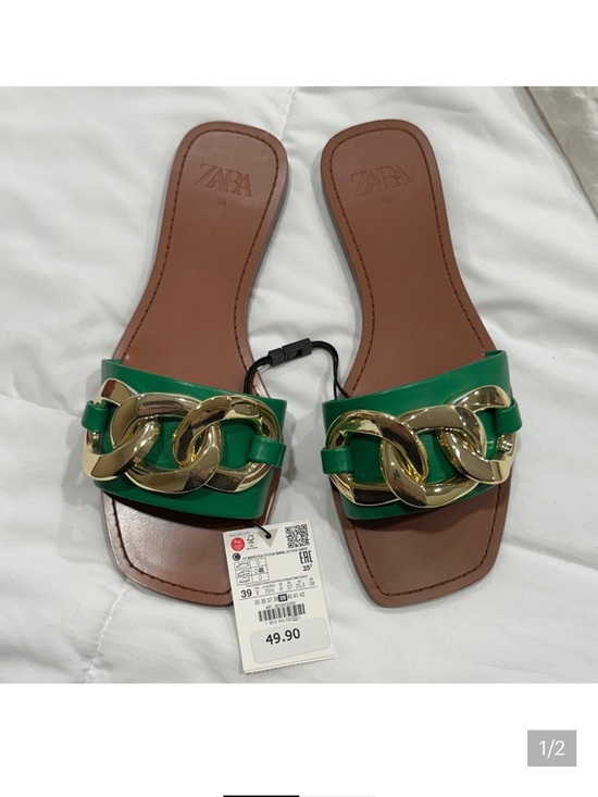 I am looking to buy the Zara emerald green slide sandals with the gold chain accent in size 35 (US 5). Please comment if you have this exact pair and want to sell them.